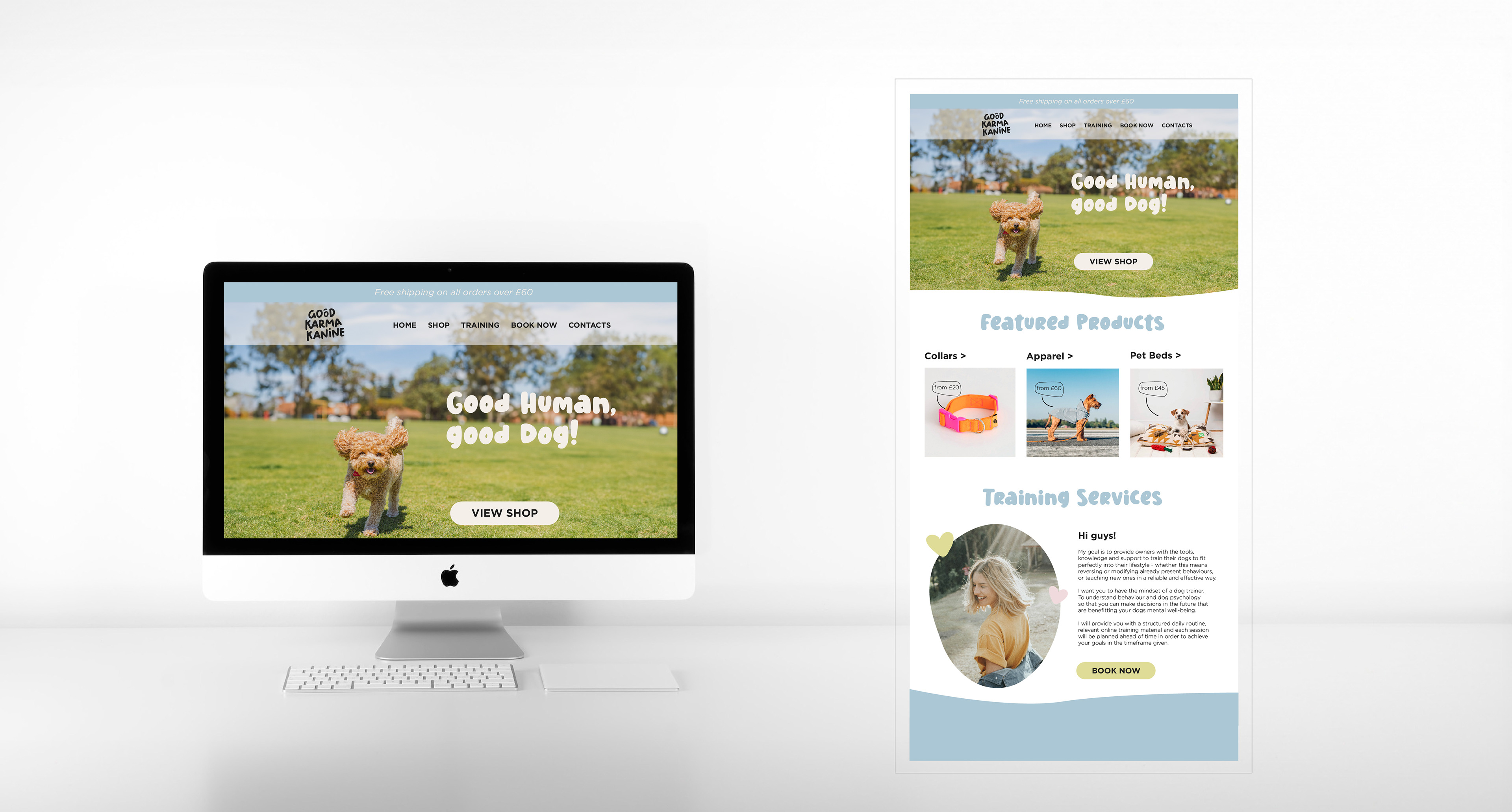 GKK, a UK-based dog training service, primarily concentrates on instructing dogs to behave in urban settings such as shops and coffee shops, fostering socialization with other dogs. In addition to their core training services, the brand is gearing up to launch a shop that will showcase a diverse array of dog apparel, collars, and accessories. This comprehensive branding initiative has been designed to seamlessly integrate across digital and offline platforms, ensuring a unified and engaging presence for the brand across various channels.
